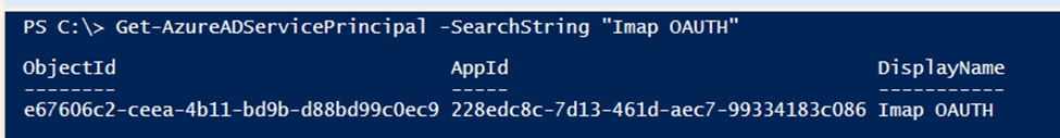 Get-AzureADServicePrincipal -SearchString «Imap OAUTH»